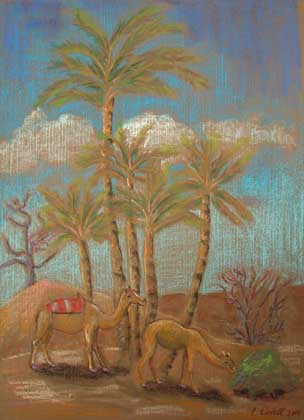 Dromedare mit Palmen